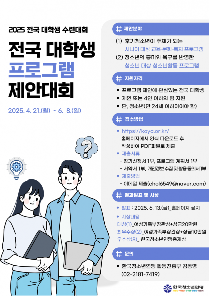 [동작구] [한국청소년연맹] 2025 전국 대학생 수련대회 '전국 대학생 프로그램 제안대회' 안내