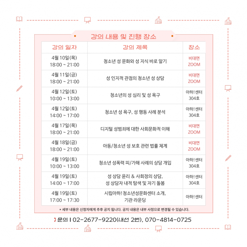 목록 [영등포구] [아하!청소년성문화센터] 성상담 전문가 양성 워크숍 안내 페이지 정보 작성자 한창수 댓글 0건 조회 145회 작성일 2025-03-07 본문 . 이전글[특허청] 제38회 대한민국발명전시회 모집 안내 25.03.10 다음글2025년 인천 청소년 디아스포라 영상공모전 안내 25.03.06 댓글 0 댓글목록 등록된 댓글이 없습니다. 목록