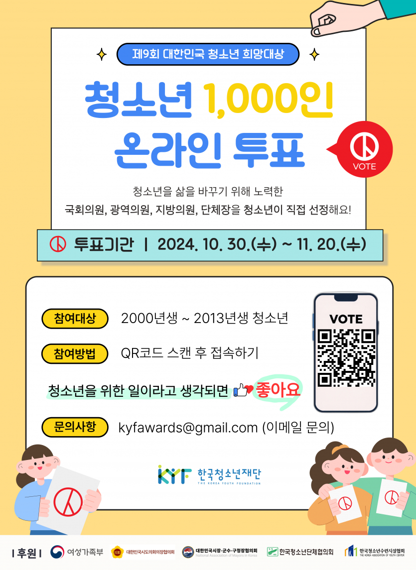 목록 [서대문구] [한국청소년재단] 제9회 대한민국 청소년 희망대상 안내 페이지 정보 작성자 한창수 댓글 0건 조회 214회 작성일 2024-11-01 본문 . 이전글[오금청소년센터] 2024년 슈퍼스타S 사업 안내 24.11.05 다음글[양천구립신월청소년문화센터] 책을 품은 축제 홍보 안내 24.11.01 댓글 0 댓글목록 등록된 댓글이 없습니다. 목록