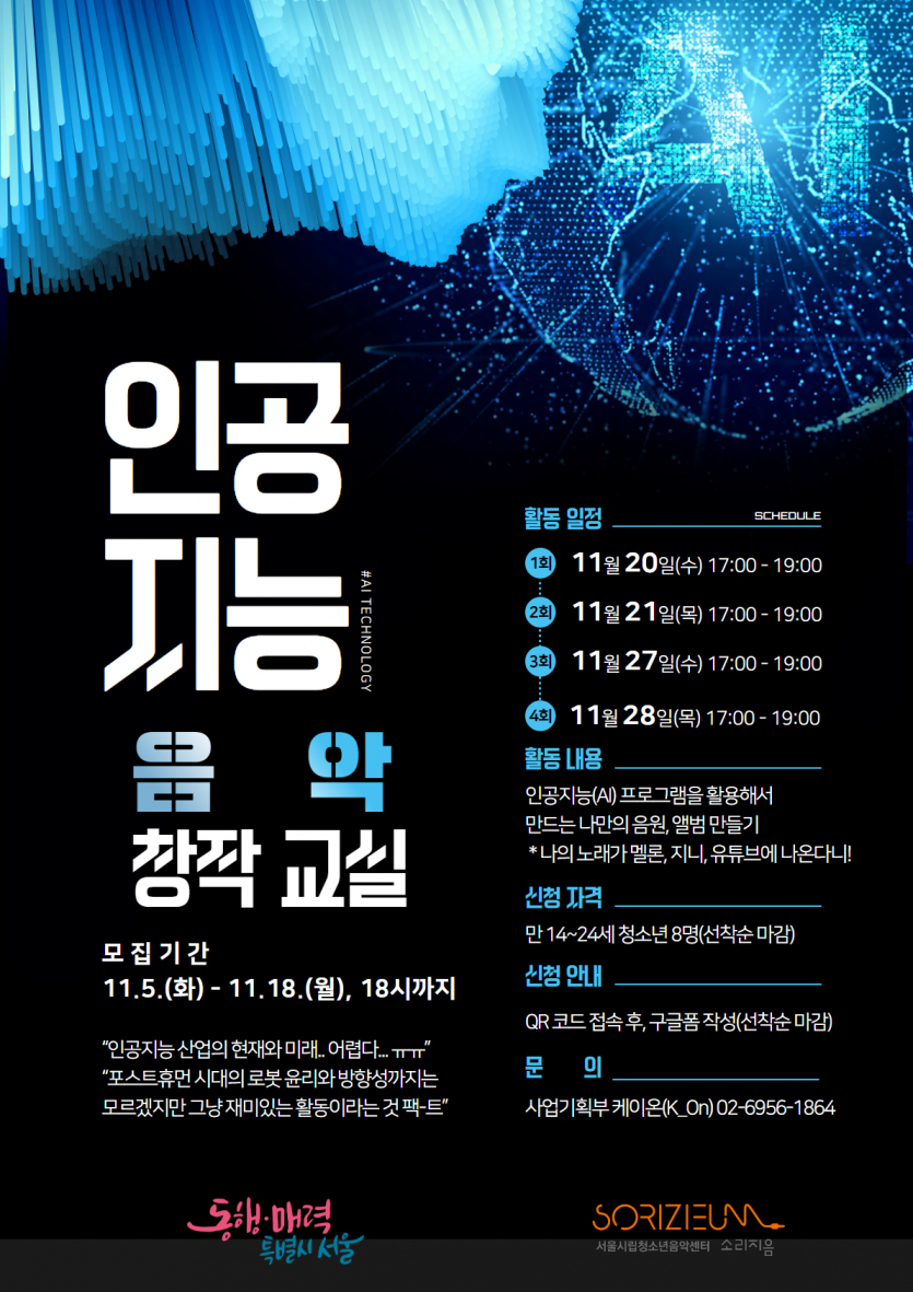 [양천구] [시립청소년음악센터] 인공지능(AI) 음악 창작 교실 참가 청소년 모집 안내
