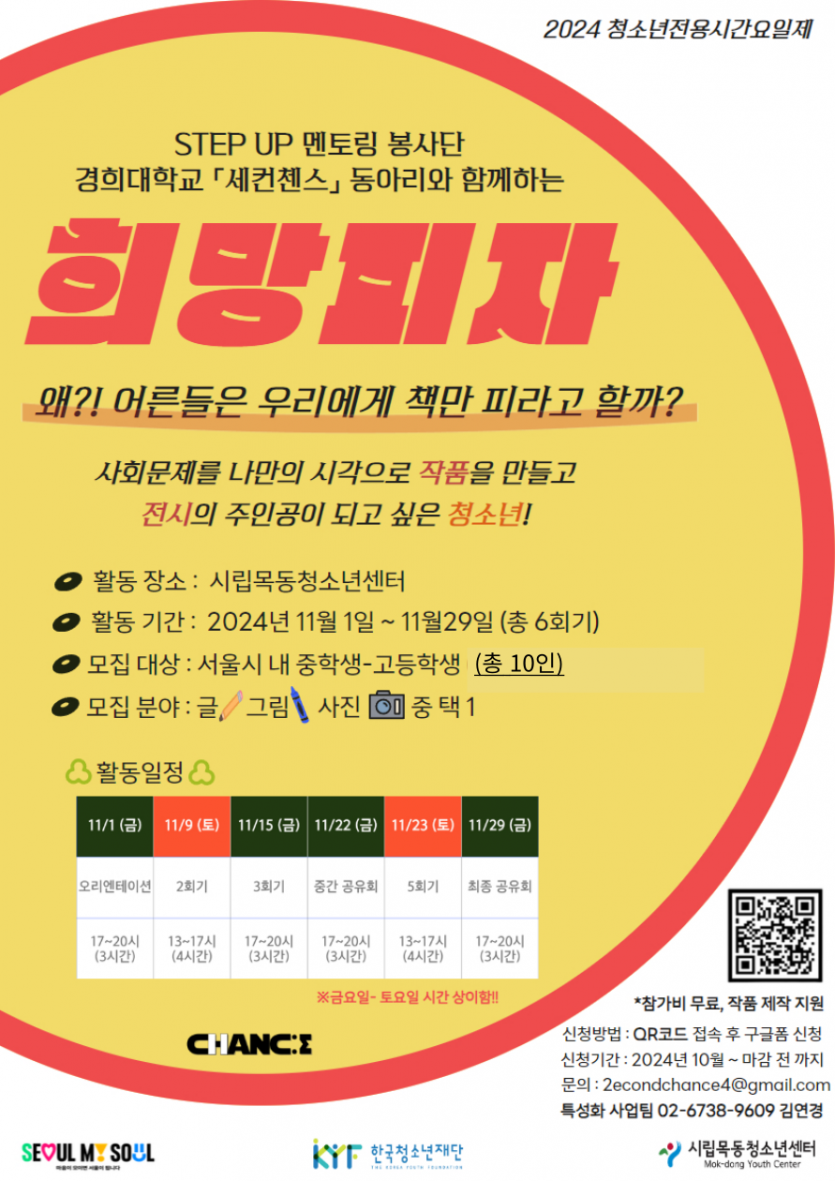 [양천구] [경희대학교, 목동청소년센터] 경희대학교 ‘세컨챈스’ X 시립목동청소년센터 전시 멘토링 프로그램 <희망피자> 피자 만들 멘티 모집 START!