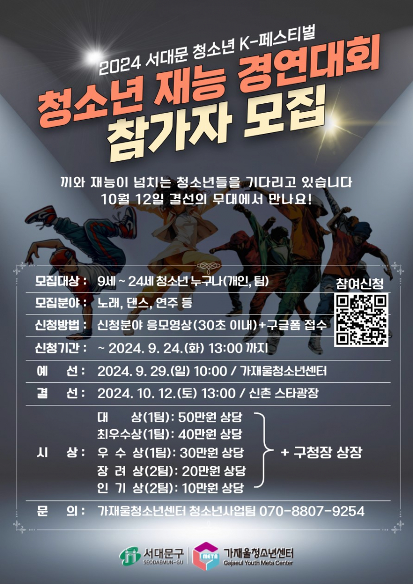 [서대문구] [가재울청소년센터] 2024년 서대문 청소년 K-페스티벌 '청소년 재능 경연대회' 참가자 모집안내
