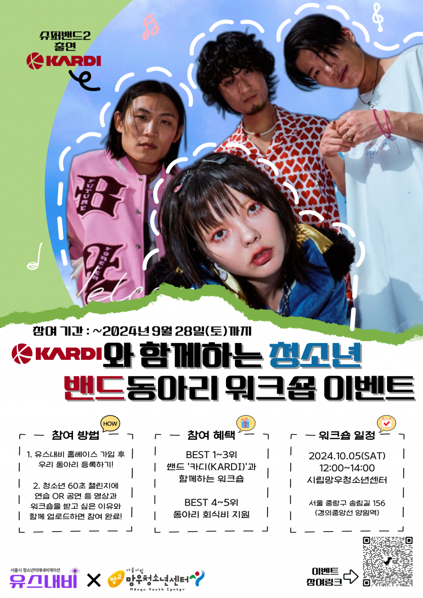 [용산구] [청소년미디어센터] 슈퍼배드2 '카디(KARDI)'와 함께하는 밴드 워크숍/회식비 지원 이벤트 안내
