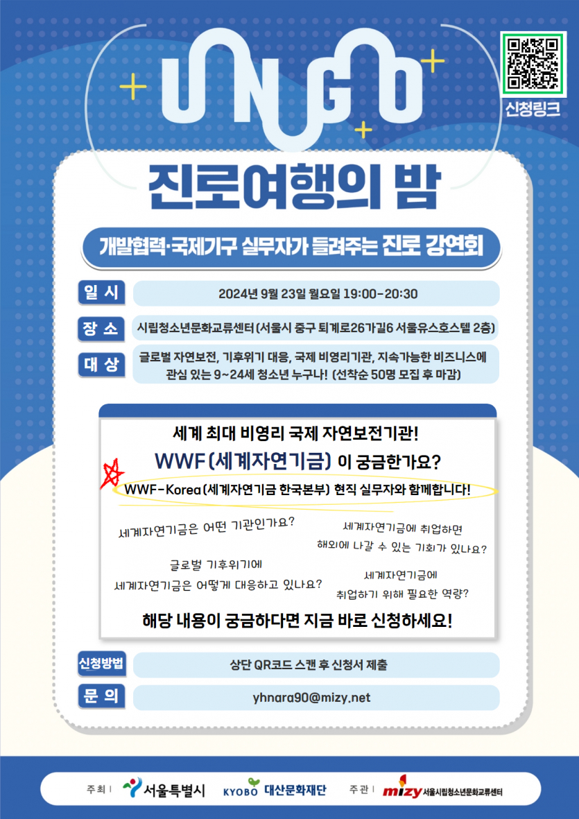 [중구] [청소년문화교류센터] UNGO진로여행의 밤(진로특아) WWF-KOREA(세계자연기금 한국본부)편 안내