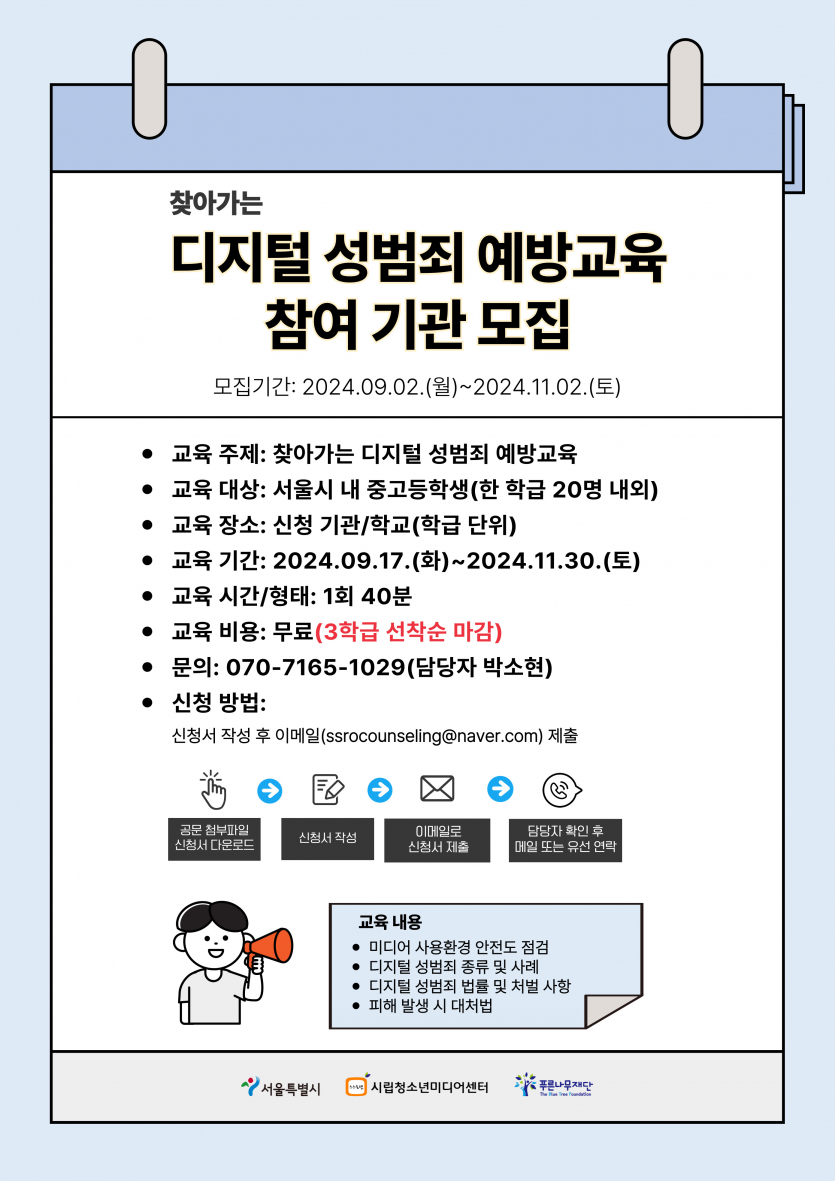 [용산구] [청소년미디어센터] 미디어 역기능 예방교육(사이버폭력, 디지털 성범죄) 안내
