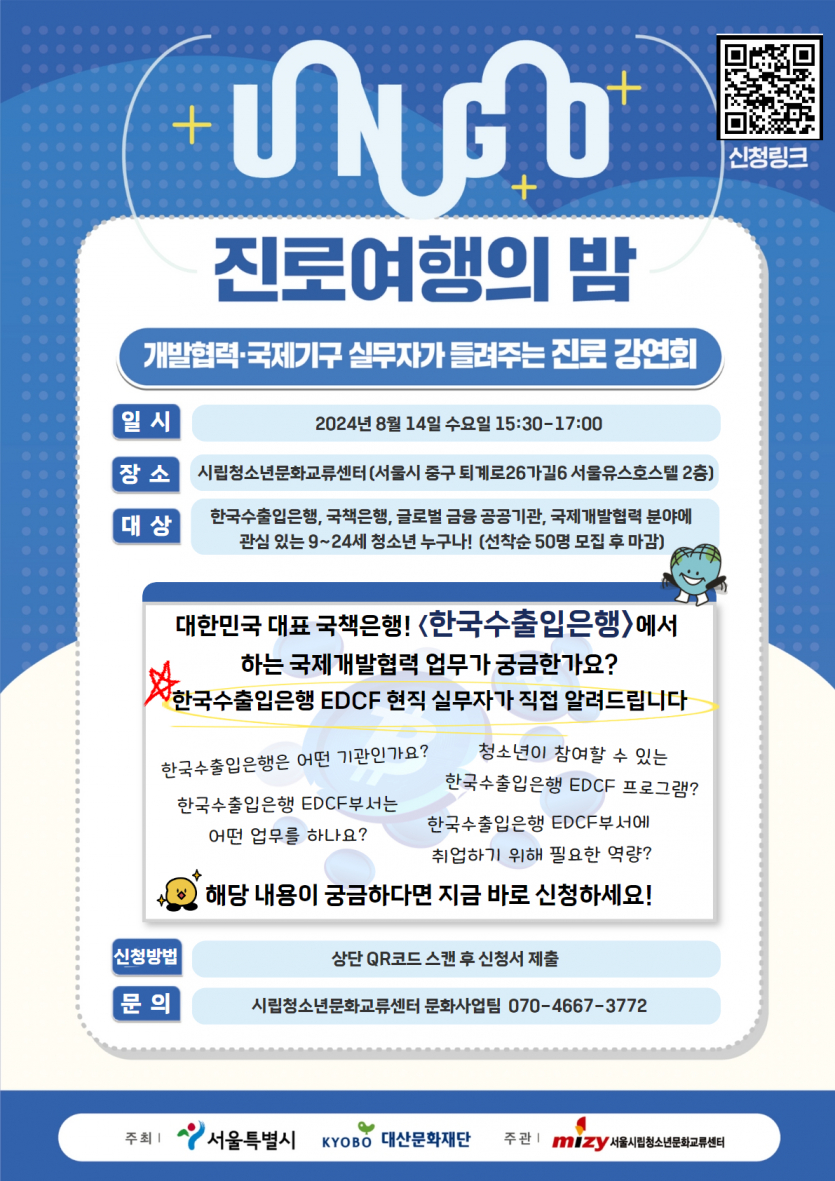 [중구] [청소년문화교류센터] UNGO진로여행의 밤(진로특강) 한국수출은행편 안내
