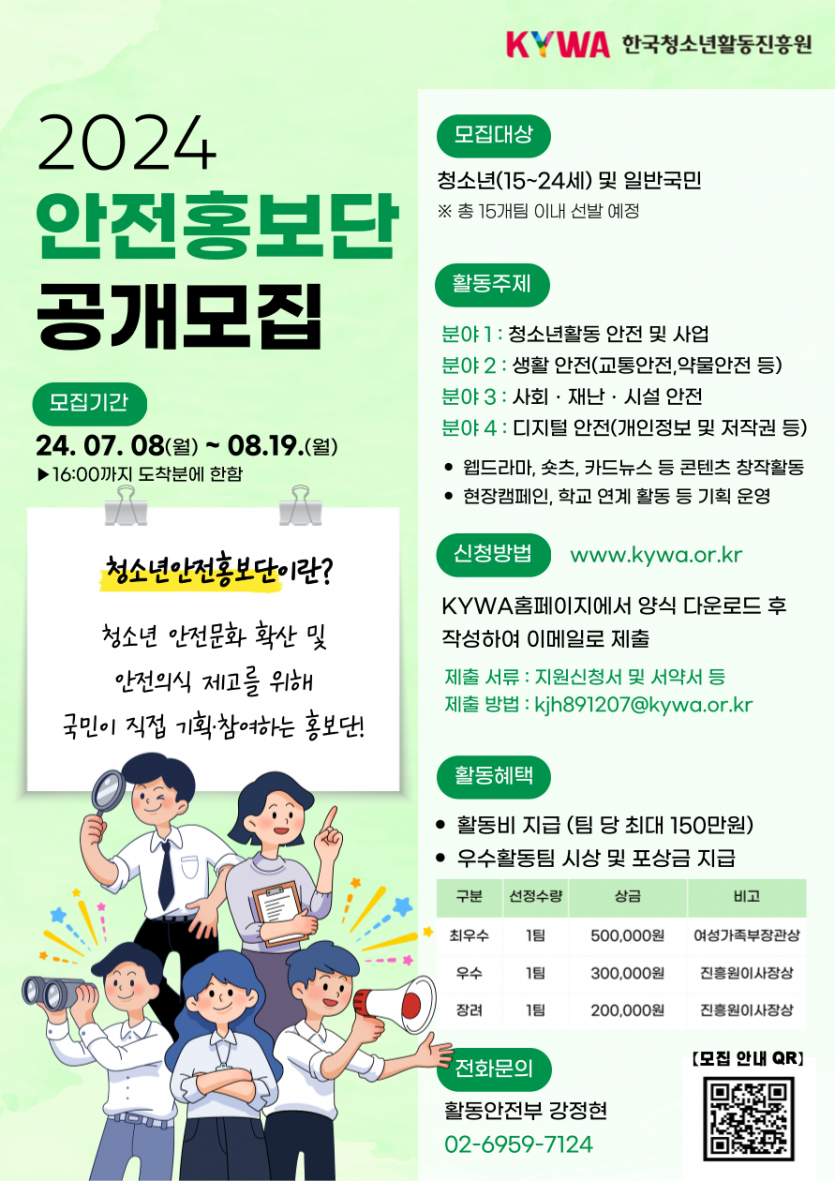 - 모집분야: ①청소년활동 안전 ② 생활 안전 ③사회·재난·시설 안전 ④디지털 안전