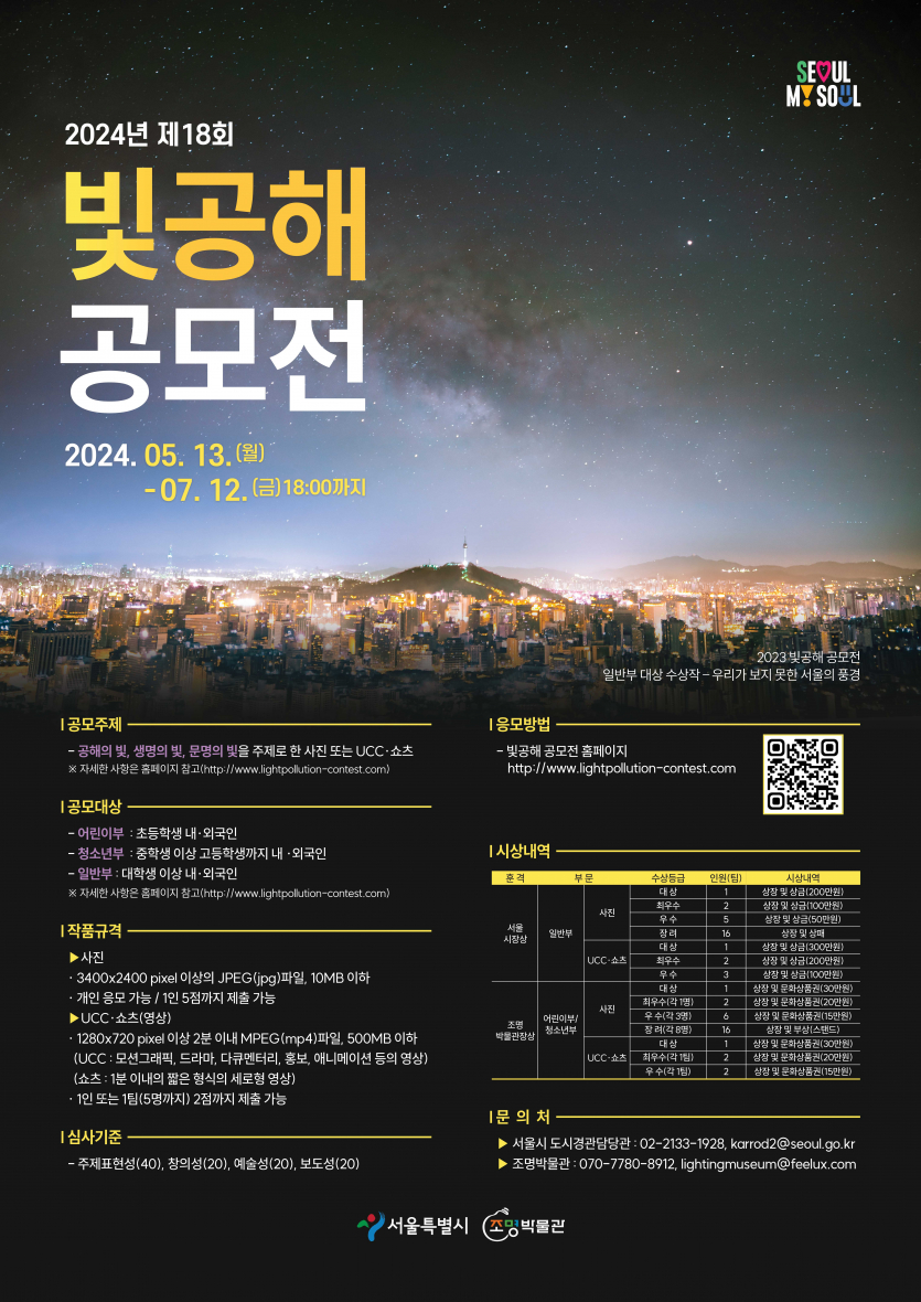 ※ 자세한 내용은 공모전|서울시-내 손안에 서울(seoul.go.kr) 및 공식 홈페이지(http://www.lightpollution-contest.com) 참조