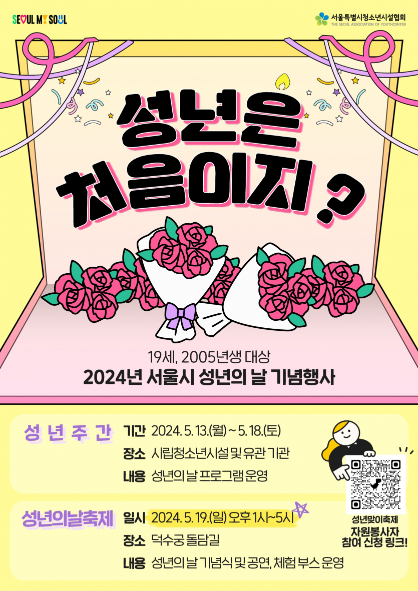 1) 건 명: 2024년 서울시 성년의 날 축제 자원봉사자 모집