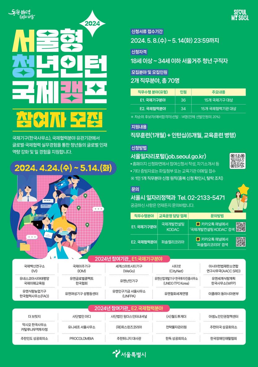 서울형 청년인턴 직무·국제캠프 참여자 모집 개요 >
