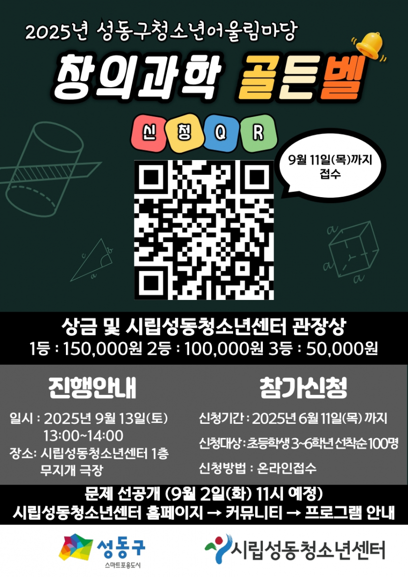 [성동구] [성동청소년센터]2025년 시립성동청소년센터 성동구 청소년어울림마당 창의과학축제-창의과학 골든벨 안내