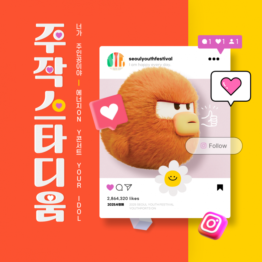 해치와 소울프렌즈가 준비한 특별한 공연과 다채로운 체험 부스까지~ 온 가족이 함께 즐기면서 웃음 가득한 하루가 될 거예요. 모두가 어울려 소통하고 에너지를 나누는 서울청소년축제 주작 스타디움에 꼭 놀러 오세요!