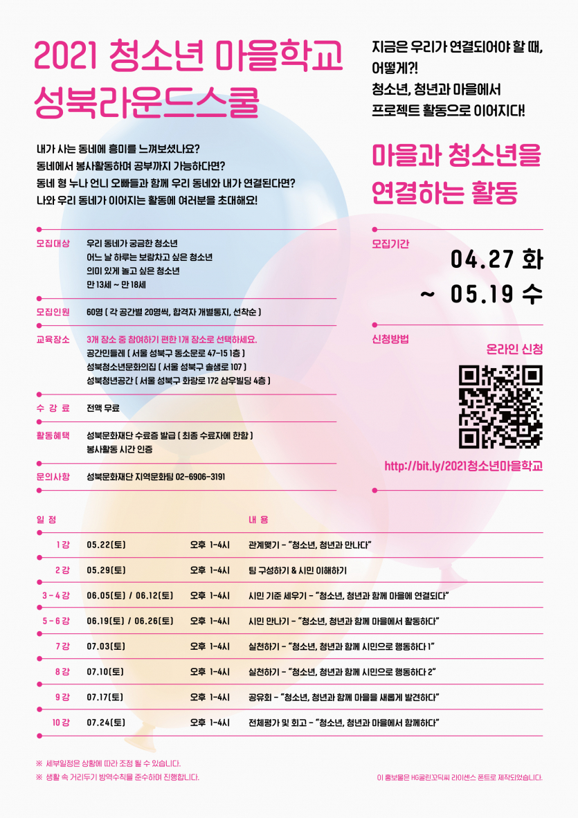 온라인 신청 http://bit.ly/2021청소년마을학교