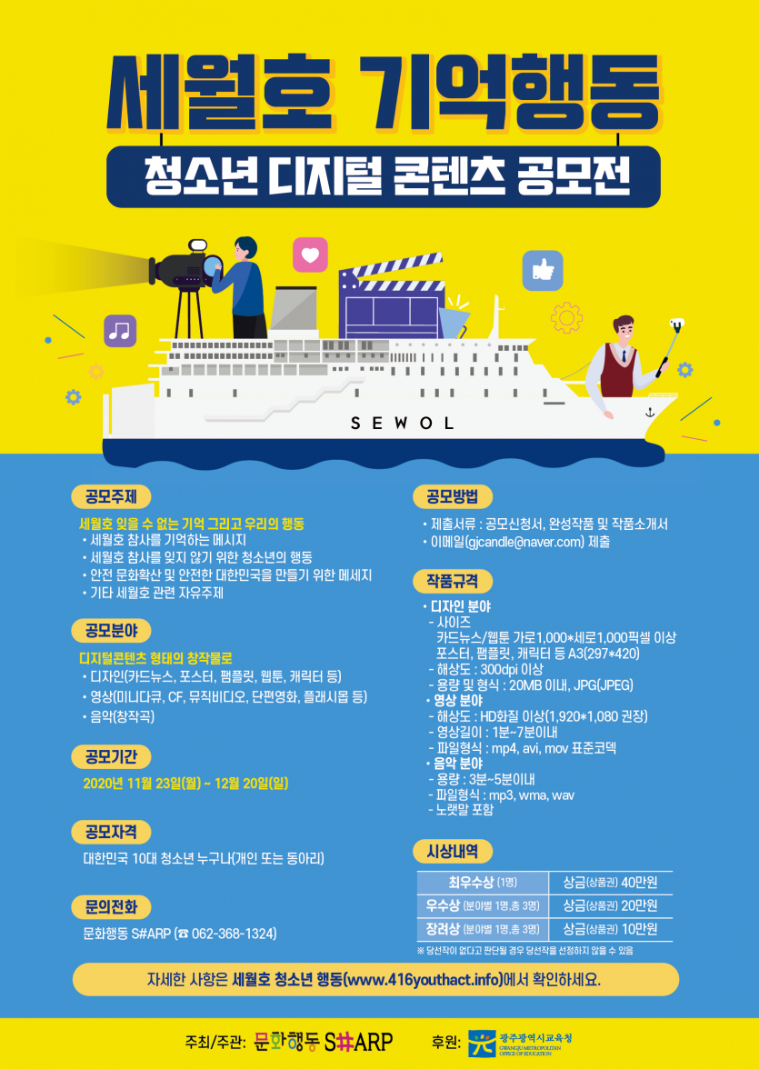* 수상자는 “세월호 청소년 행동 홈페이지(http://www.416youthact.info) 게재 및 개별통보