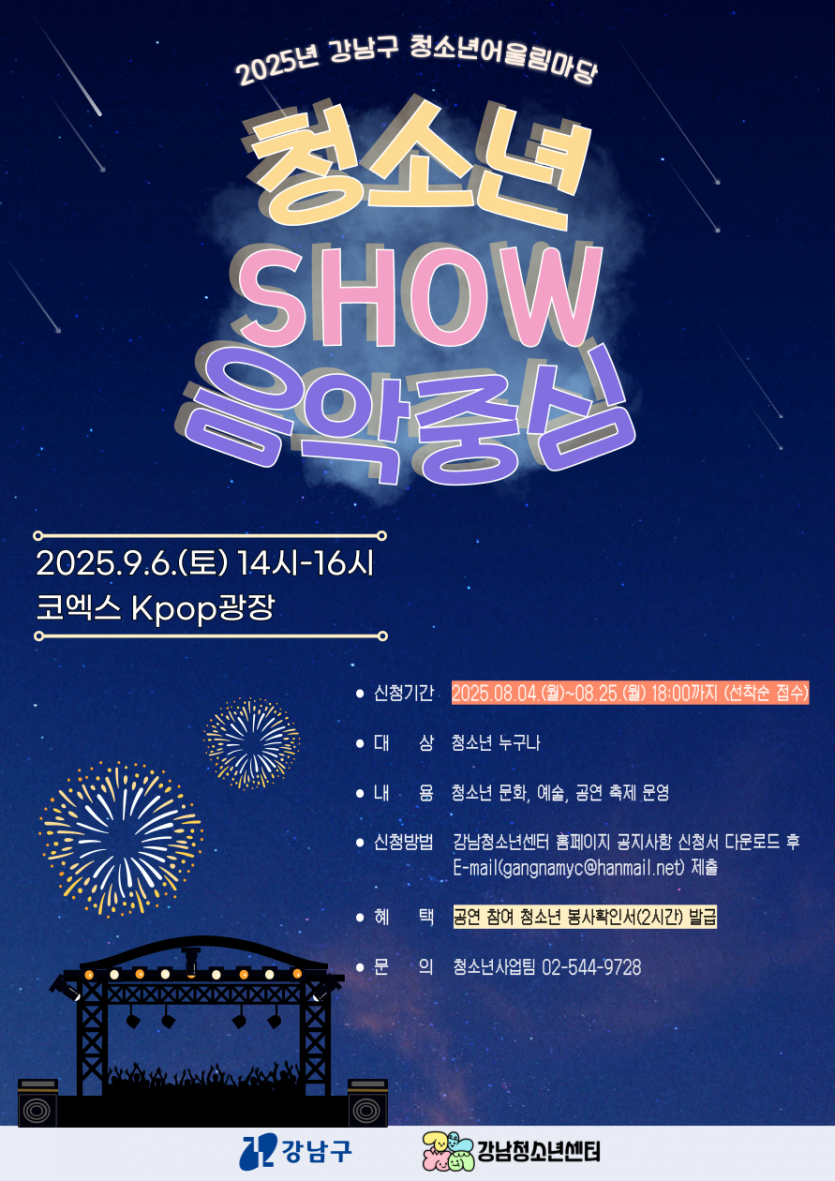 [강남구] [강남청소년센터] 2025년 강남구 청소년어울림마당 <청소년Show음악중심>