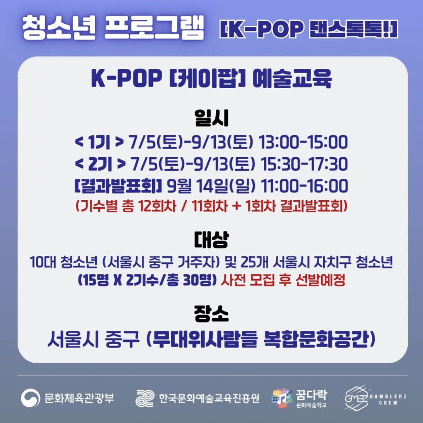 [중구] [꿈다락 문화예술학교] 2025 꿈다락 문화예술학교 _ [K-POP 댄스톡톡!(Dance Tok Tok)] 안내