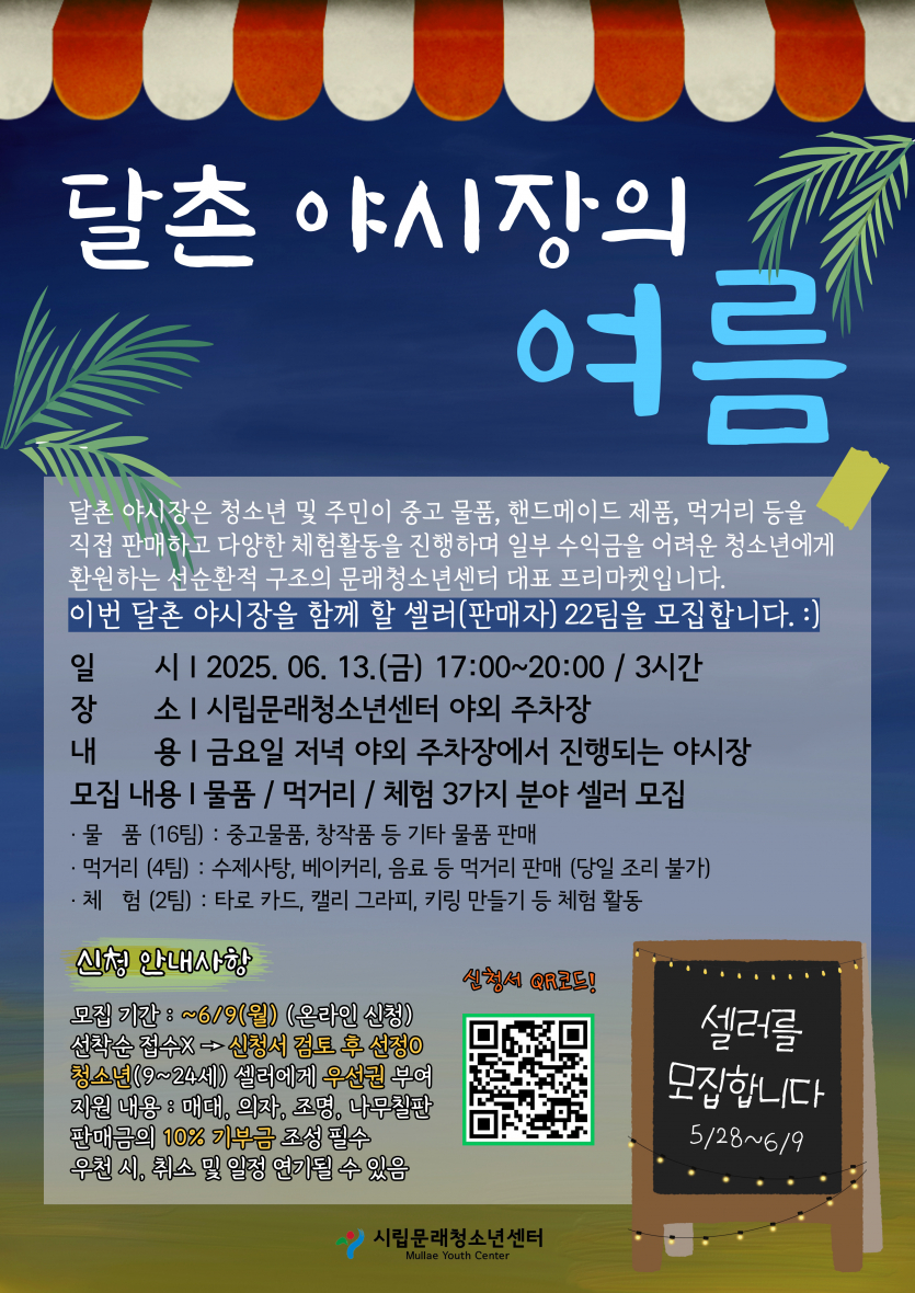 [영등포구] [문래청소년센터] 2025년 청소년 프리마켓 '달촌 야시장의 여름' 청소년 셀러 모집안내