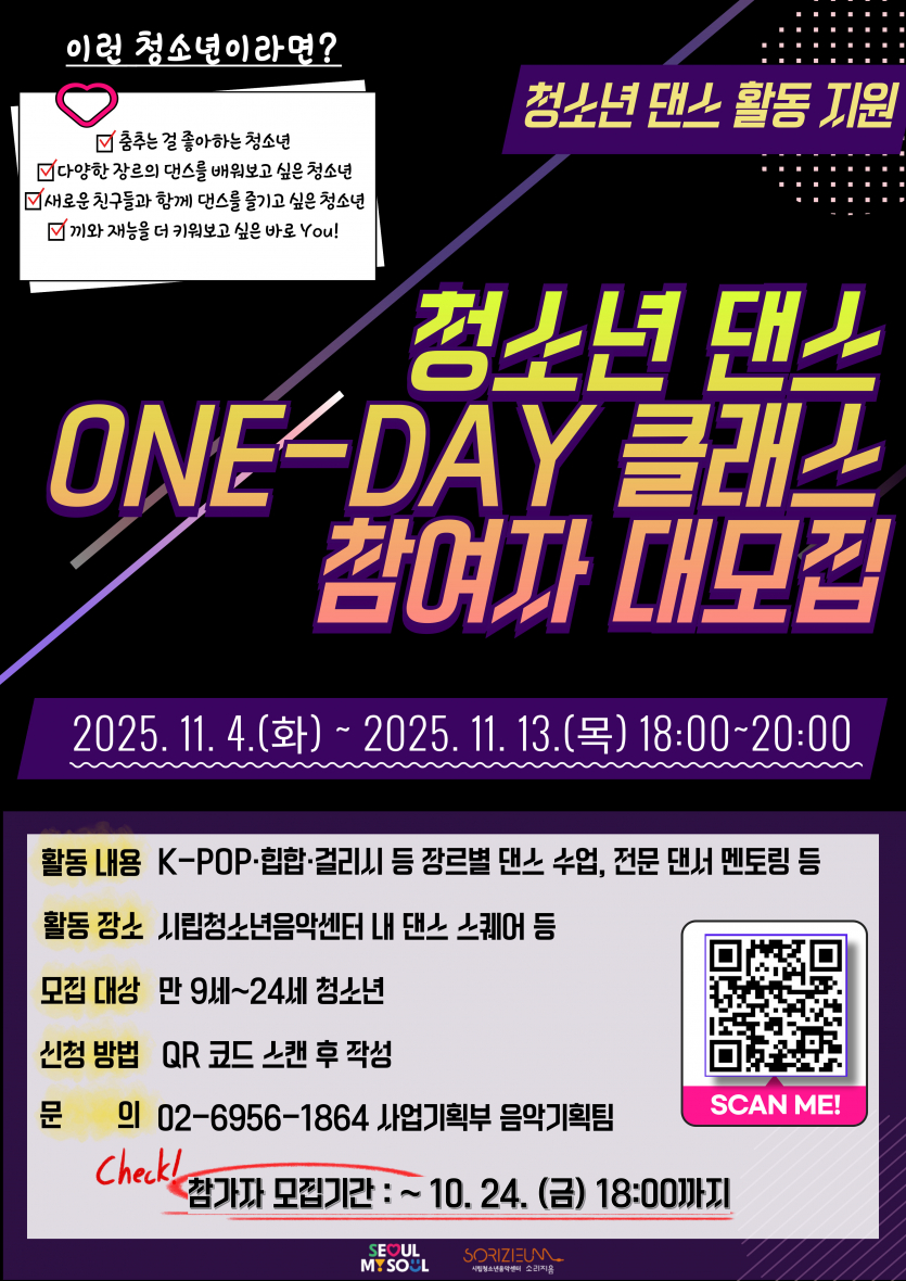 [양천구] [청소년음악센터] 청소년 댄스 원데이 클래스 모집안내