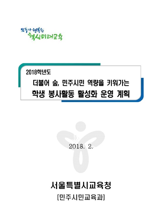 2018학년도 학생 봉사활동 활성화 운영 계획
