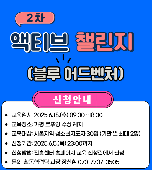 [교육] 2025년 청소년지도자 역량개발 아카데미 교육_2차 액티브 챌린지 참가 안내 (무료)