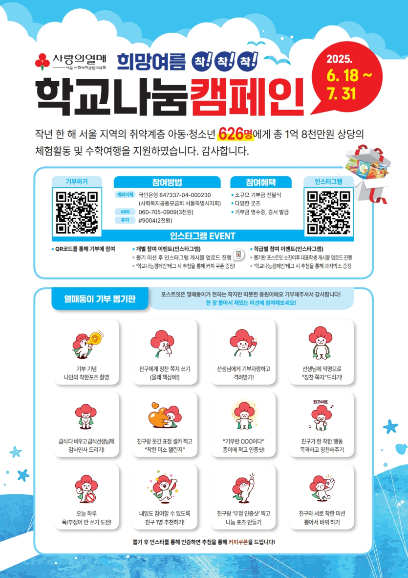 [중구] [서울사회복지공동모금회 ]'2025 희망여름 착!착!착 학교나눔캠페인' 홍보 안내