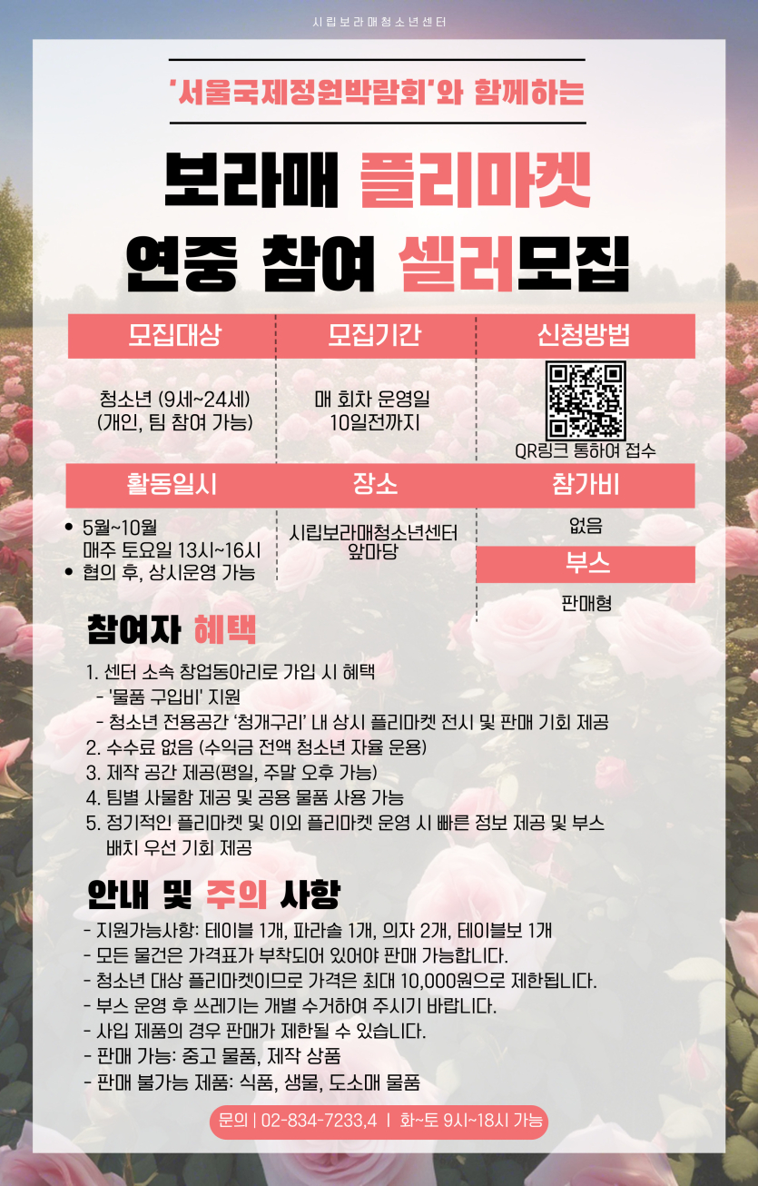 [동작구] [보라매청소년센터 2025년 서울국제정원박람회와 함께하는 보라매 플리마켓 참여 안내