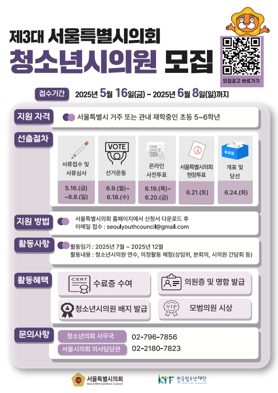 [서울 외] [한국청소년재단] 2025년 서울특별시의회 제3대 청소년시의원 모집안내