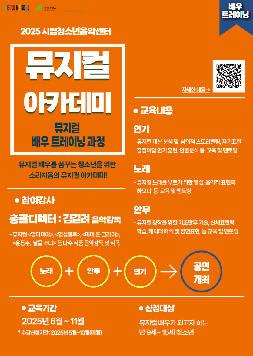 [양천구] [청소년음악센터] 2025년 <뮤지컬 아카데미] 참가자 모집 안내