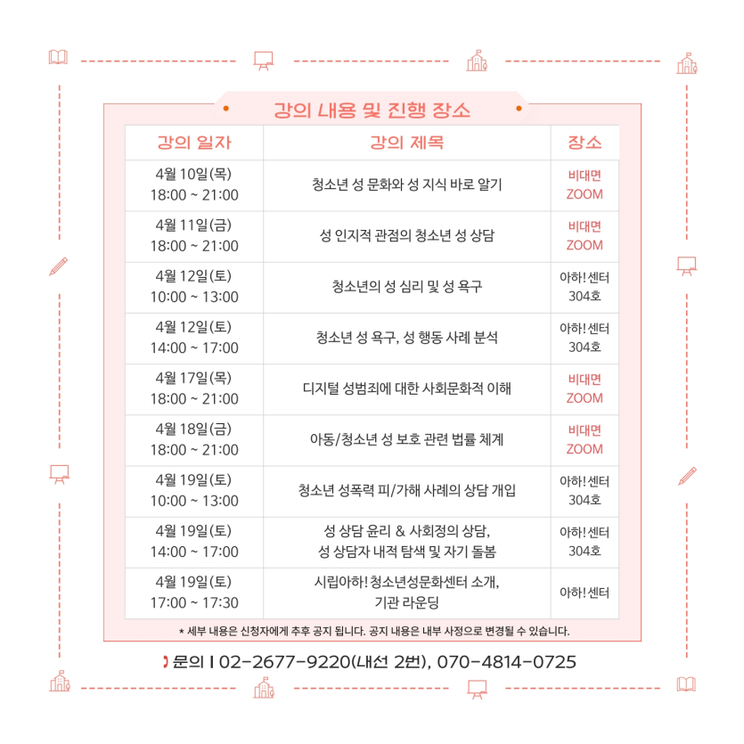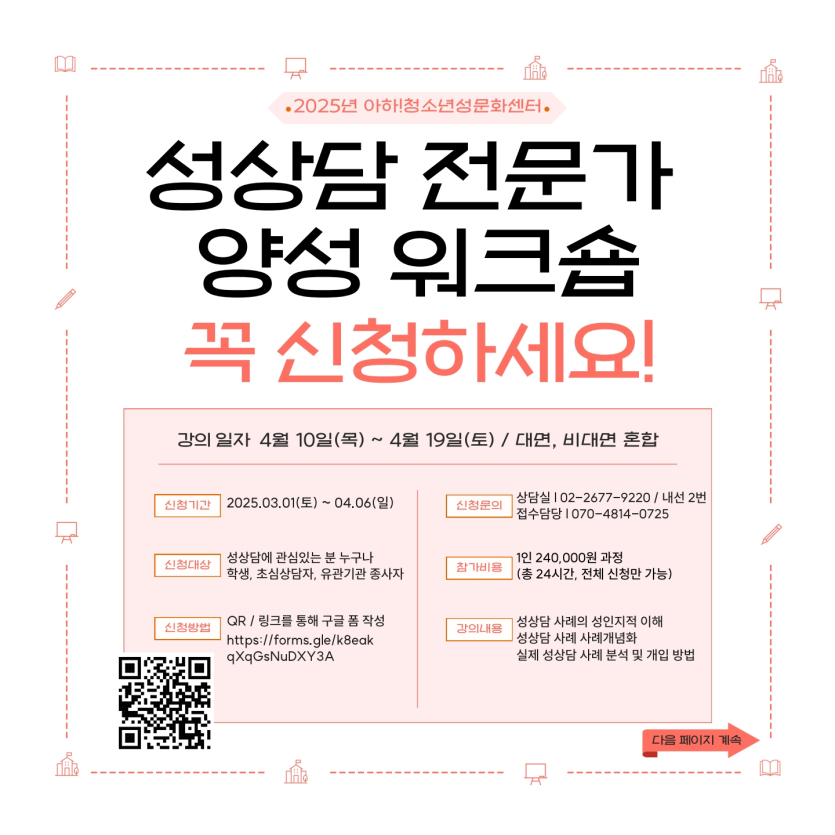 목록 [영등포구] [아하!청소년성문화센터] 성상담 전문가 양성 워크숍 안내 페이지 정보 작성자 한창수 댓글 0건 조회 405회 작성일 2025-03-07 본문 . 이전글[특허청] 제38회 대한민국발명전시회 모집 안내 25.03.10 다음글2025년 인천 청소년 디아스포라 영상공모전 안내 25.03.06 댓글 0 댓글목록 등록된 댓글이 없습니다. 목록