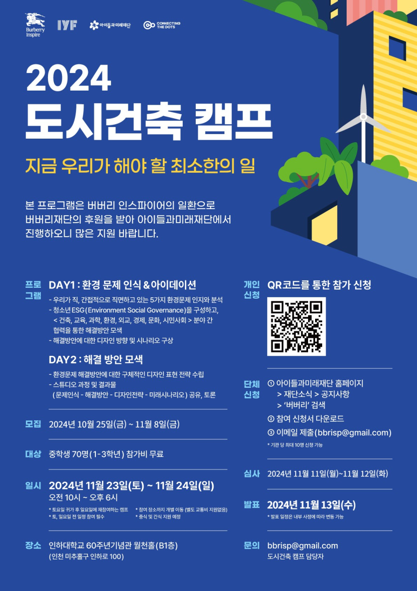 목록 [서울 외] [주식회사어썸스쿨] 2024 도시건축 캠프 안내 페이지 정보 작성자 한창수 댓글 0건 조회 586회 작성일 2024-11-07 본문 . 이전글[시립노원청소년미래진로센터] 2024년 시립노원청소년미래진로센터 제5회 초등부 유스해커톤 참가 안내 24.11.08 다음글[시립마포청소년센터] 2024년 마포청소년페스티벌 [알파고 시나씨와 함께하는 청소년 진로콘서트] 안내 24.11.07 댓글 0 댓글목록 등록된 댓글이 없습니다. 목록