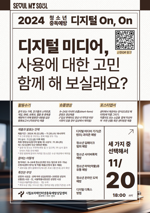 [동작구] [시립보라매청소년센터] 2024년 서울특별시장배 제3회 청소년 디지털미디어중독예방 '활도웃기/숏폼영상/포스터엽서 공모전' 안내