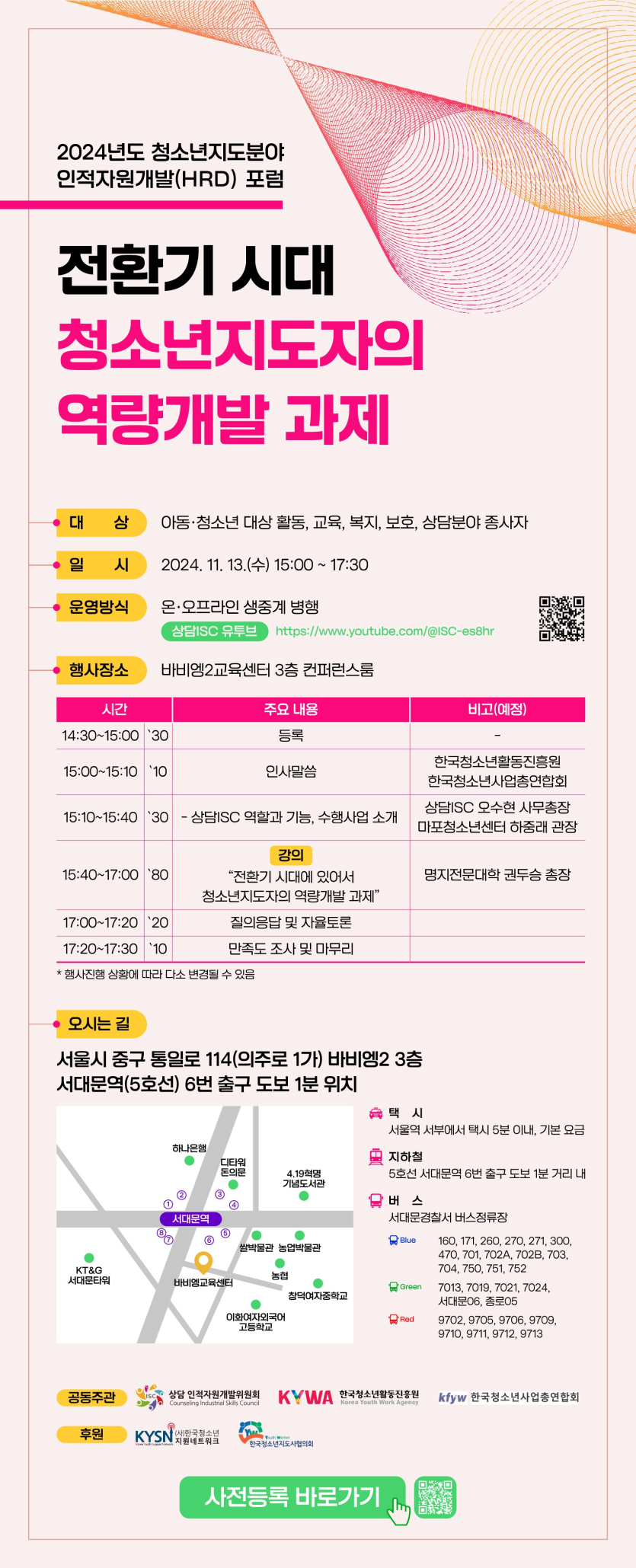 마. 운영방식: 온·오프라인 생중계 병행 (*상담ISC 유튜브 https://www.youtube.com/@ISC-es8hr)