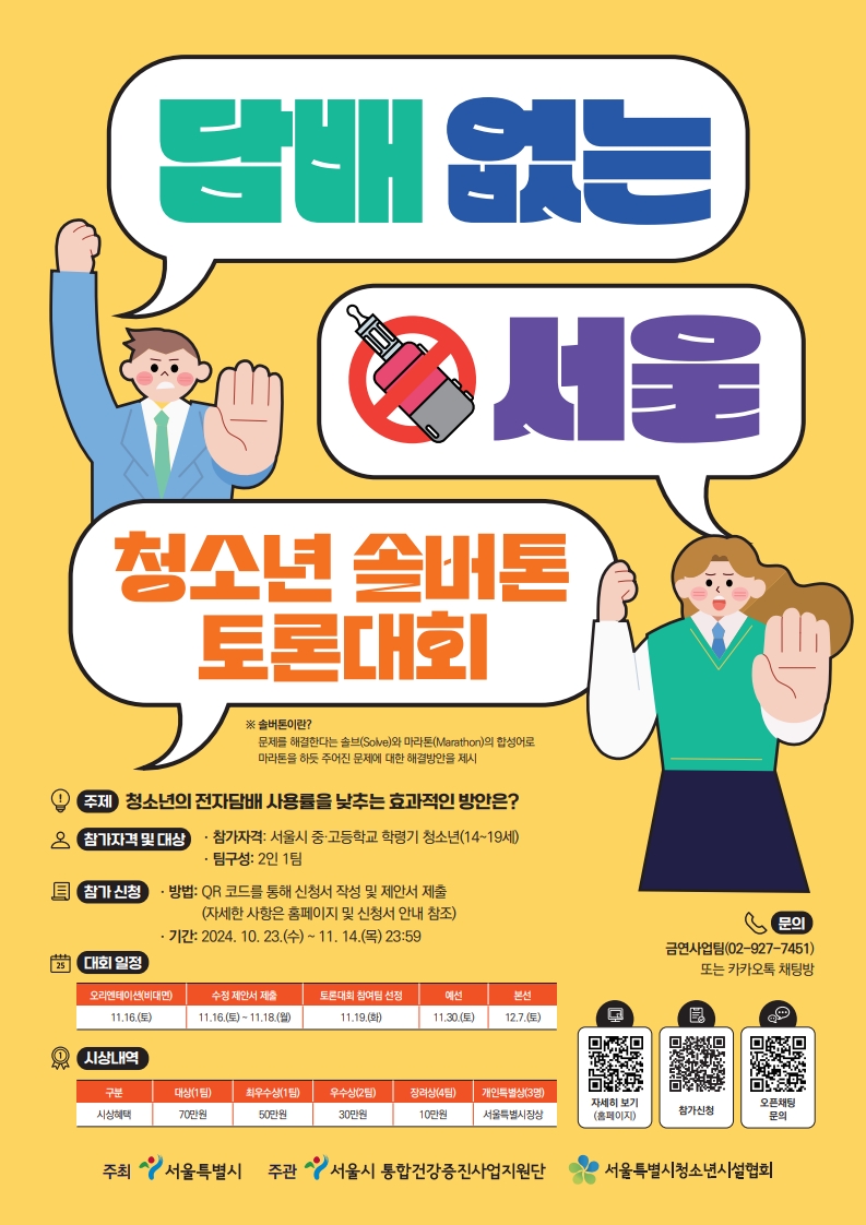 [중구] [서울시청소년시설협회] '담배없는 서울' 서울시 청소년 술버톤 대회 모집 연장 안내