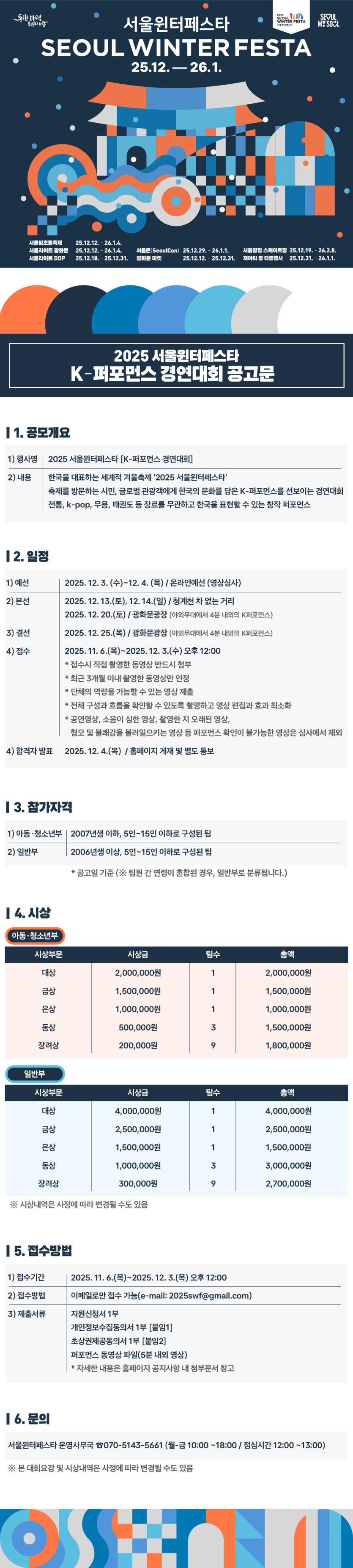 ※ 문의 : 서울윈터페스타 운영사무국(070-5143-5661, 월-금 10:00 ~ 18:00)