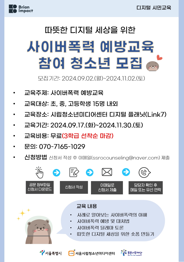 . 교육대상 : 서울시 내 초3 ~3(한 학급 20명 내외)