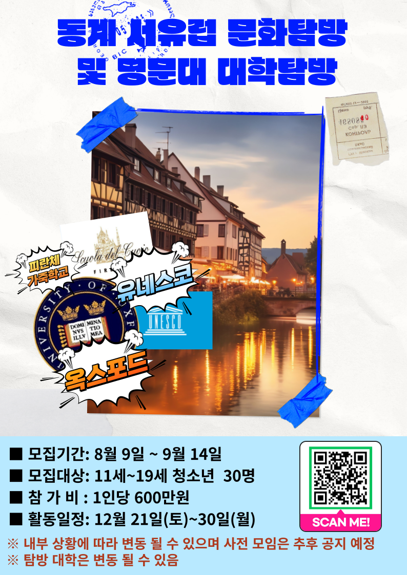 [강남구] [역삼청소년수련관] 동계 서유럽 문화탐방 및 명문대 대학탐방 프로그램 참가자 모집 안내