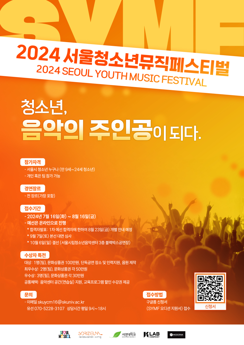 가. 제 목: 서울시립청소년음악센터 <2024 SYMC 서울청소년뮤직페스티벌> 청소년 참가자 지원 요청