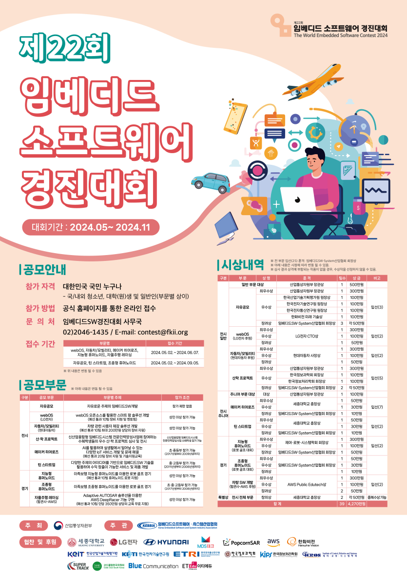 목록 [중구] 제22회 임베디드 소프트웨어 경진대회 페이지 정보 작성자 관리자 댓글 0건 조회 459회 작성일 2024-05-17 본문 . 이전글청소년 미국 해외탐방 및 교육 프로젝트 24.05.21 다음글학교 밖 청소년 특화 대학 입시 설명회 안내 24.05.17 댓글 0 댓글목록 등록된 댓글이 없습니다. 목록