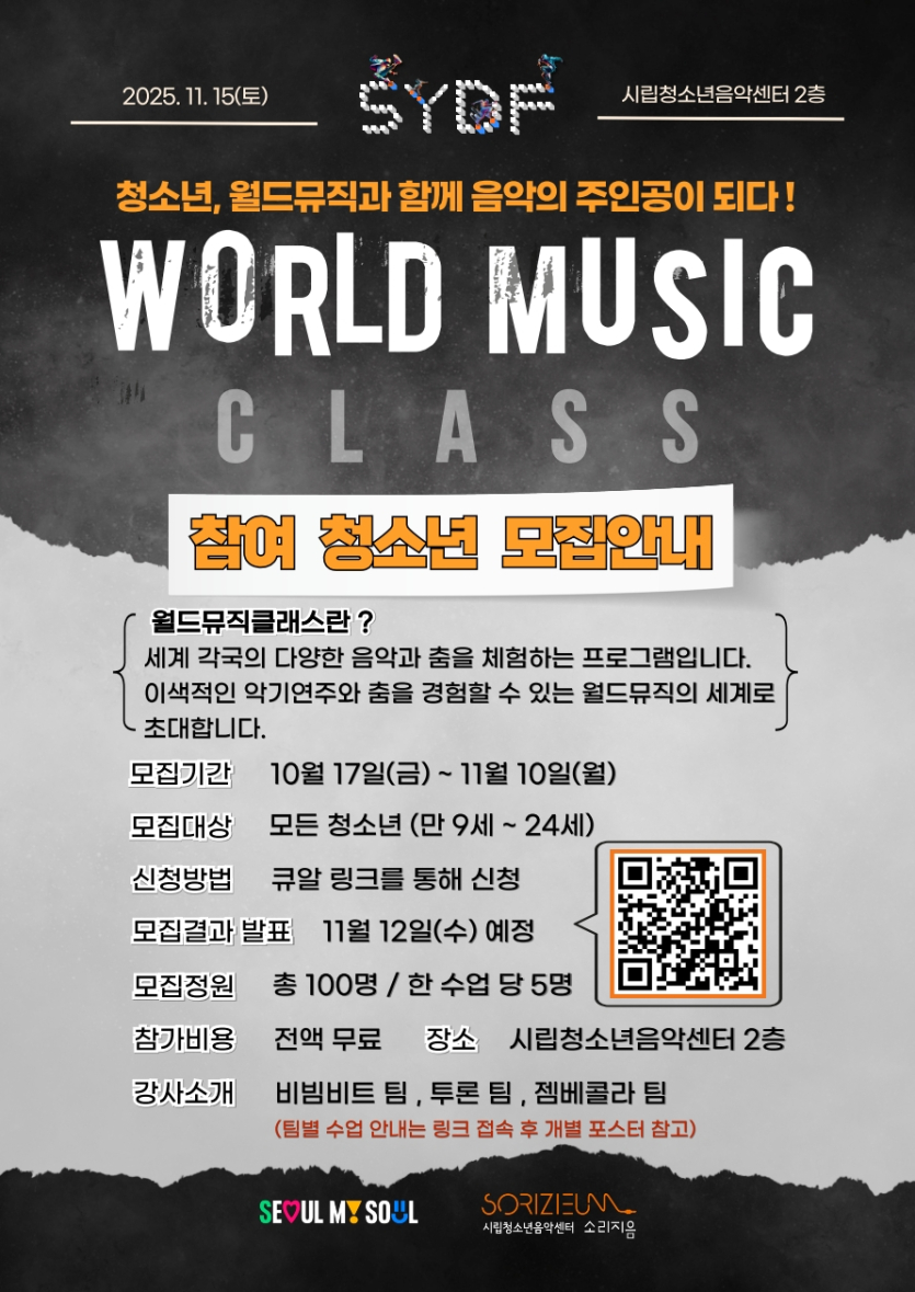 [양천구] [청소년음악센터] 2025 월드뮤직클래스 사업 참여자 모집 안내