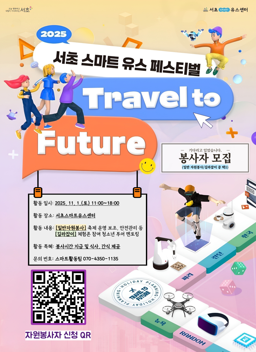 [서초구] [서초유스센터] 2025 서초스마트유스페스티벌 'Travel to Future' 홍보 및 대학생 자원봉사자 모집