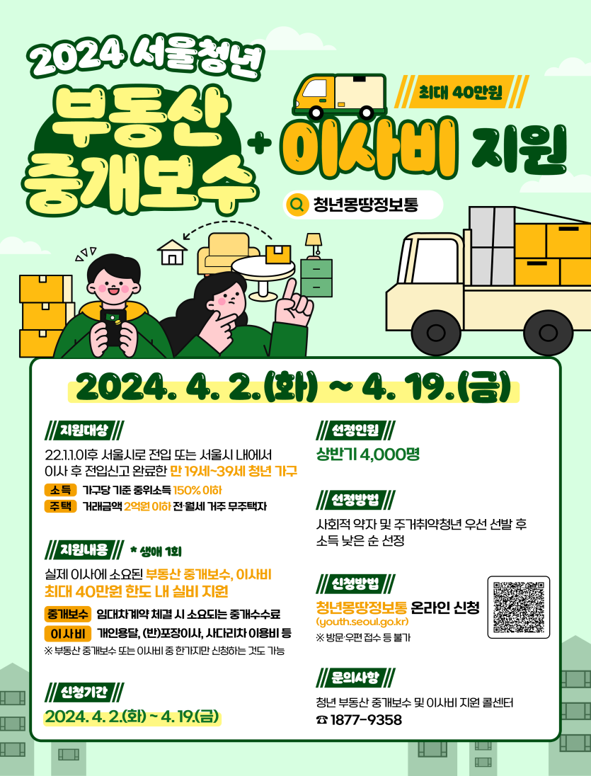 ? 지원내용 : 부동산 중개보수, 이사비 최대 40만원 실비 지원