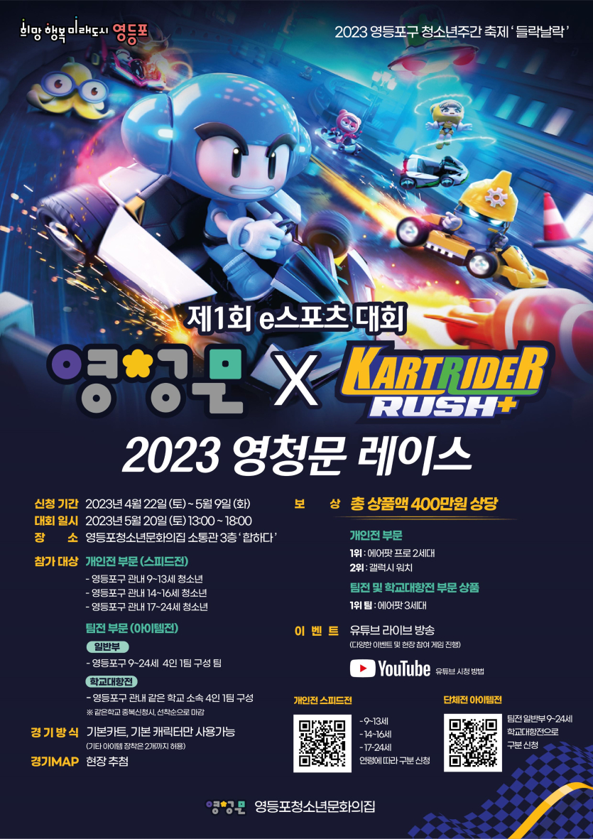 - 행 사 명 : 2023년 영등포청소년문화의집 e-스포츠 모바일카트라이더 대회 '영청문레이스' 홍보 요청의 건