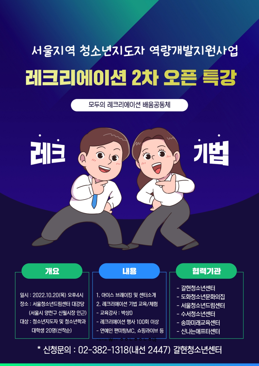 ​서울지역 청소년지도사 역량개발지원사업 모두의 레크리에이션 10월 오픈 강좌 참여 안내
