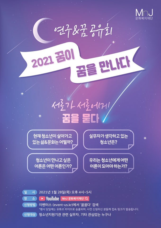 MnJ문화복지재단 2021년 꿈이 꿈을 만나다에 여러분을 초대합니다.