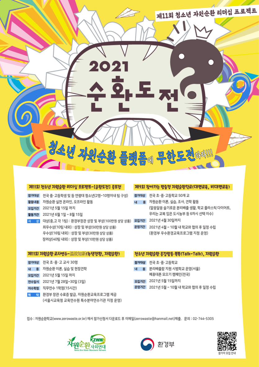 [모집]제11회 청소년 자원순환 리더십 프로젝트-[순환도전] 참가자 모집 안내