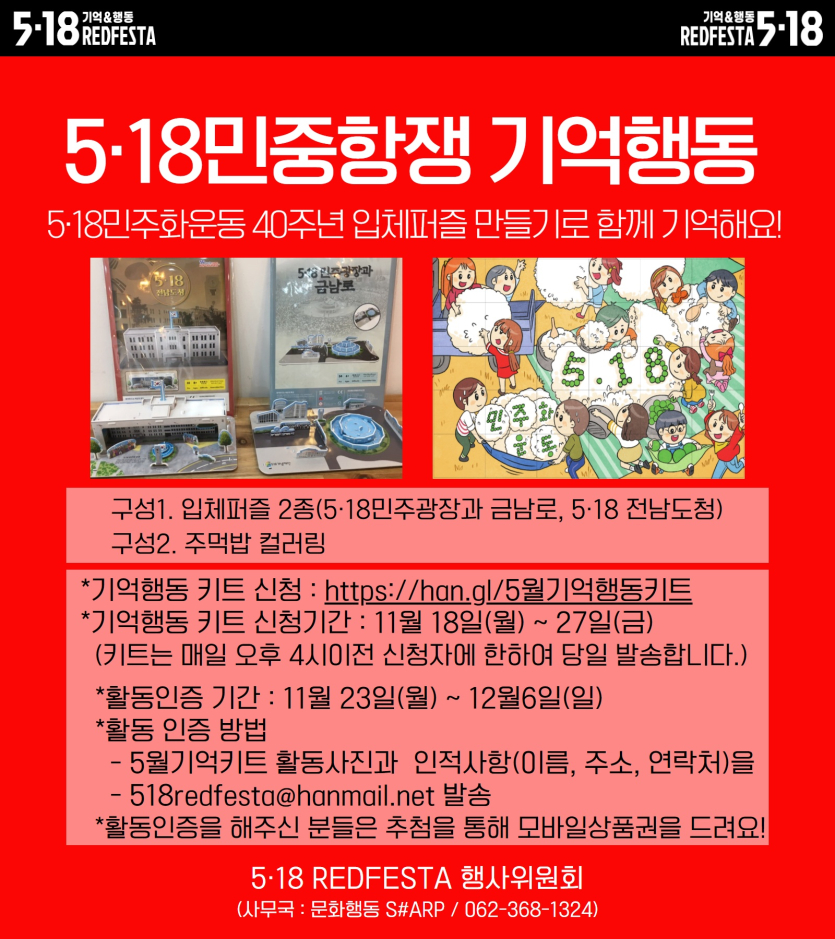 ○ 운영 : 5·18 REDFESTA 행사위원회(사무국 : 문화행동 S#ARP / 062-368-1324)