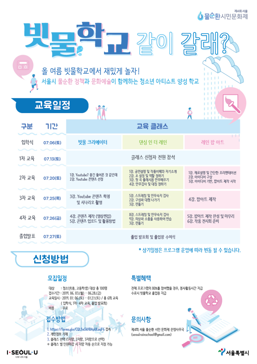 제4회 물순환 시민문화제 빗물학교 2기생 모집
