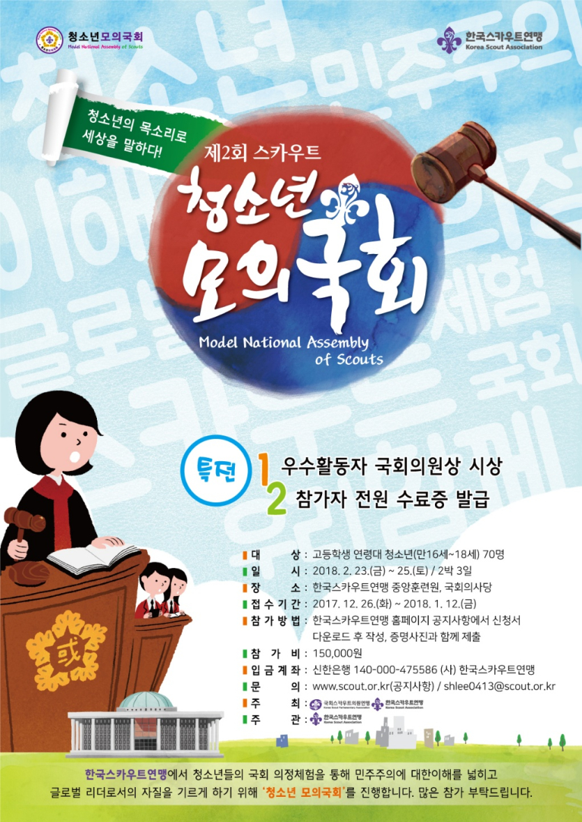 2018년도 제2회 스카우트 청소년 모의국회의 참여할 참가자를 모집합니다!