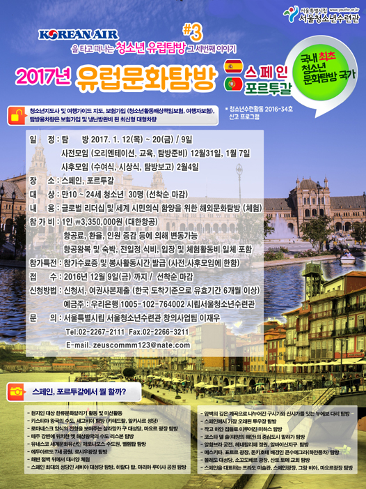 2017년 동계 청소년 해외문화탐방(스페인,포르투갈) 참가자모집