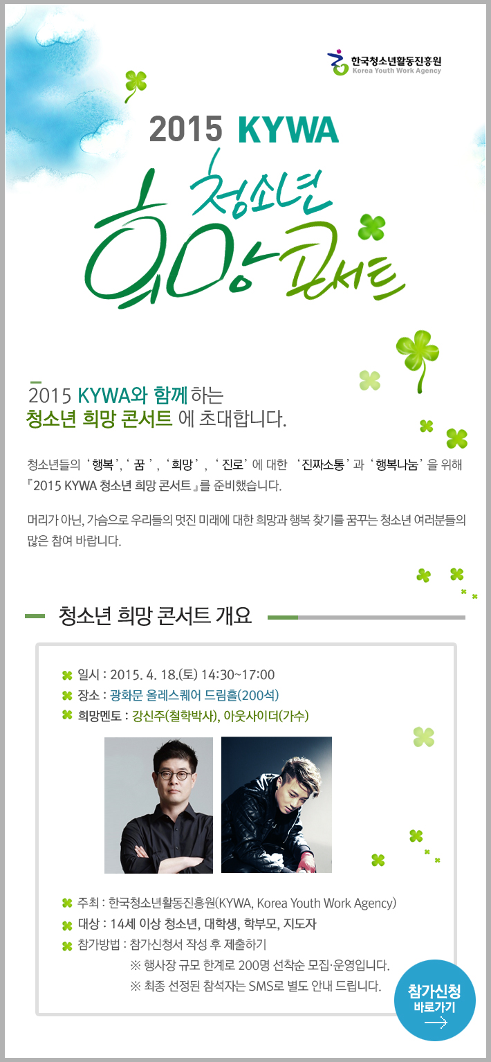 2015 KYWA와 함께 하는 "청소년 희망 콘서트"에 초대합니다.
